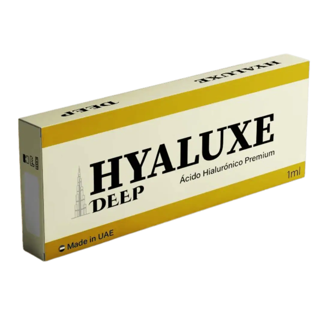Descubre HYALUXE DEEP, ácido hialurónico premium con lidocaína 0.3%, viscoelasticidad ideal y reticulación precisa. Para volumen facial profundo. Hecho en Dubái.